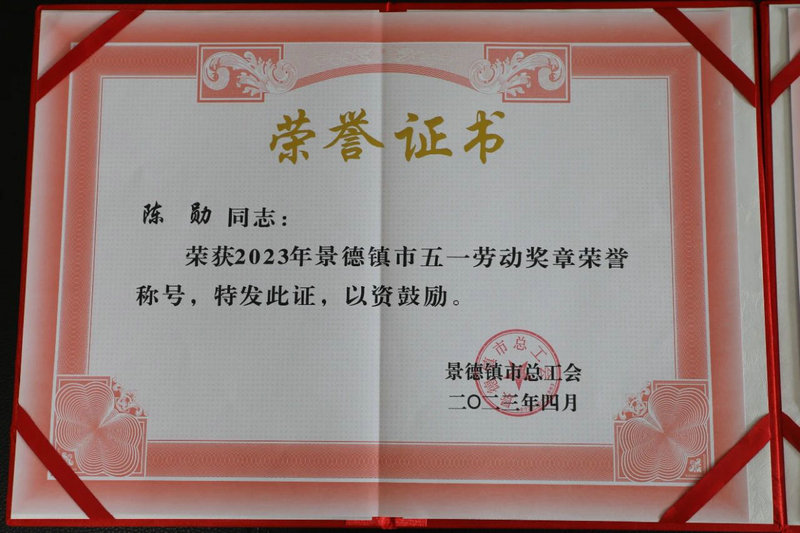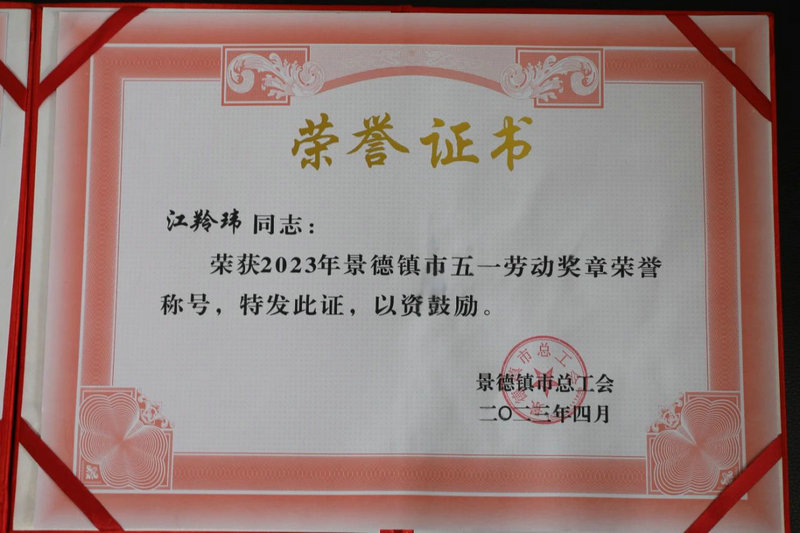 近日,集團(tuán)員工陳勛和江羚瑋榮獲市總工會(huì)授予的2023年景德鎮(zhèn)市“五一勞動(dòng)獎(jiǎng)?wù)隆睒s譽(yù)稱號(hào)。