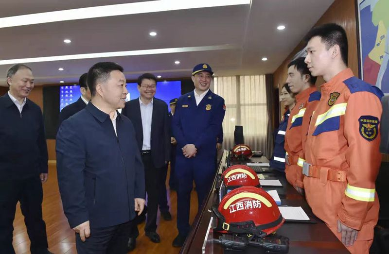 來到南昌市西湖區(qū)八一消防救援站,葉建春參觀車輛器材、救援裝備,了解隊伍建設(shè)、日常訓(xùn)練、執(zhí)勤戰(zhàn)備等情況,并與蹲守在萬壽宮歷史文化街區(qū)、繩金塔及部分重點商場的消防救援人員視頻連線,聽取防火救援形勢匯報,要求牢記“對黨忠誠、紀律嚴明、赴湯蹈火、竭誠為民”訓(xùn)詞,強化安全宣傳教育,提高處突救援能力,盡心盡力守護好人民群眾生命財產(chǎn)安全。