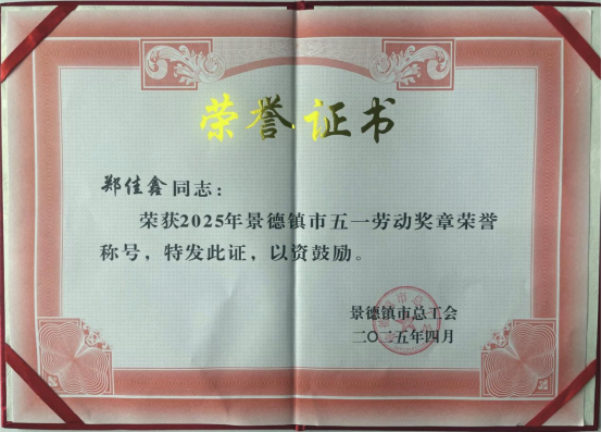 近日,國(guó)控集團(tuán)下屬子公司景德鎮(zhèn)市國(guó)信人文紀(jì)念有限公司鄭佳鑫同志,憑借在殯葬行業(yè)18年的深耕,榮獲景德鎮(zhèn)市總工會(huì)授予的2025年景德鎮(zhèn)市“五一勞動(dòng)獎(jiǎng)?wù)隆睒s譽(yù)稱號(hào)。