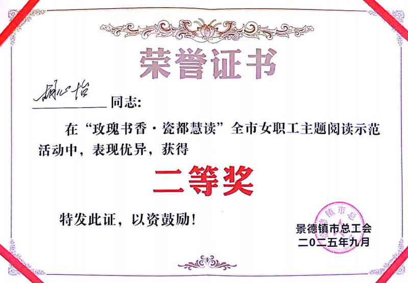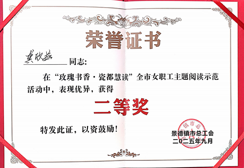 9月19日下午,在景德鎮(zhèn)市總工會(huì)舉辦的“玫瑰書香 瓷都慧讀”全市女職工示范閱讀活動(dòng)中,陶博城公司女職工胡心怡、龔欣茹代表國(guó)控集團(tuán)參賽,憑借情景朗誦作品《瓷間玫瑰,書香漫卷》脫穎而出,以 97.70分的優(yōu)異成績(jī)(位列第二),榮獲本次活動(dòng)二等獎(jiǎng)!